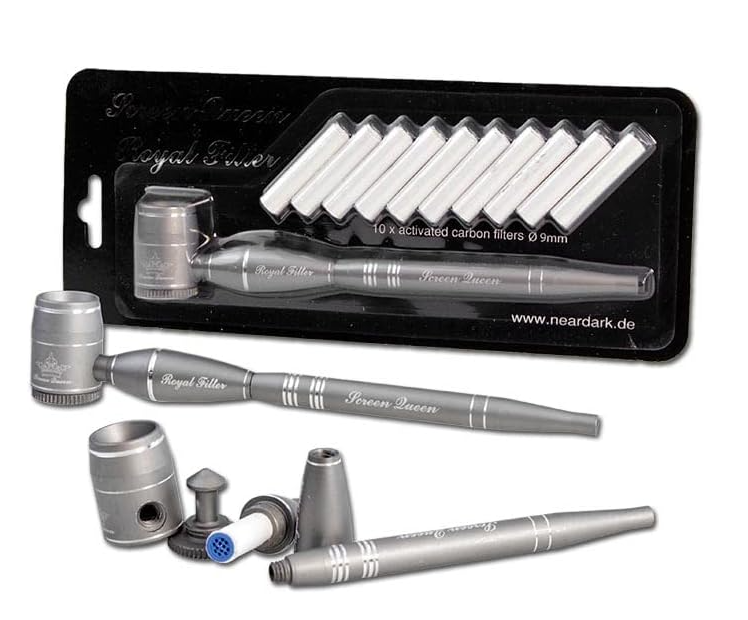 Diese Screen Queen Pfeife ist einfach und praktisch zugleich. Mit einer Länge von 170mm und einem zerlegbaren System ist sie perfekt für unterwegs. Der beiliegende Adapter und die 10 GIZEH Aktivkohlefilter sorgen für ein sauberes und angenehmes Raucherlebnis. Genießen Sie Ihre Lieblingskräuter mit der Screen Queen Pfeife und dem Royal Filter Adapter.